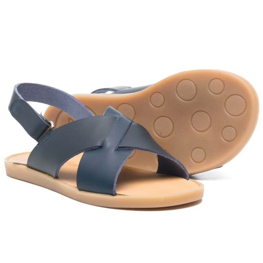 Babywalker Boy's Navy Blue Crossover-Strap Leather Sandals