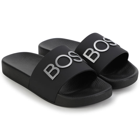Hugo Boss Boy's Black elasticated Logo Trainers