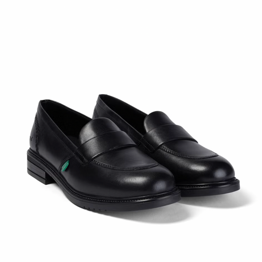 Kickers Girl's Black Leather Lach Slip School Shoes