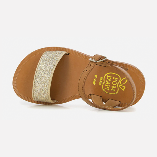 Pom D Api Girl's Camel Glitter Plagette Buckle Tao Sandals