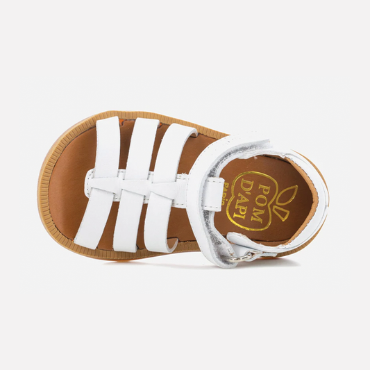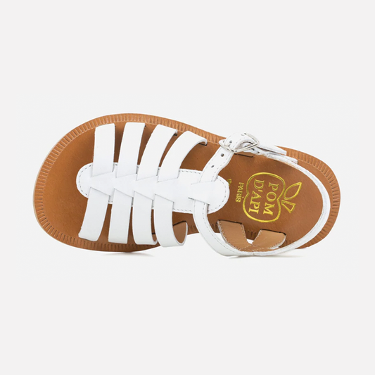Pom D Api Girl's White Leather Poppy Strap Sandals