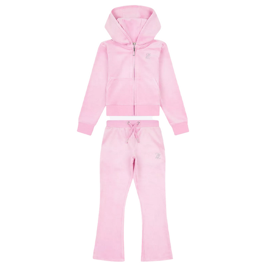 Juicy Couture Girl's Pink Lilac Chiffon Diamante Zip Through Hoodie & Bootcut Jogger Set