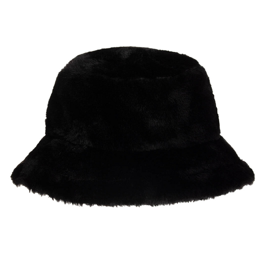 Juicy Couture Girl's Black Faux Fur Logo Bucket Hat