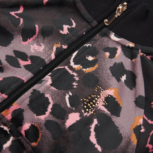 Juicy Couture Girl's Black leopard Print Velour Zip Up Cardigan