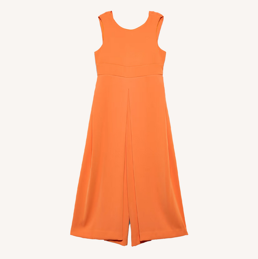 Abel&Lula Girl's Persimmon Crepe Bow Jumpsuit