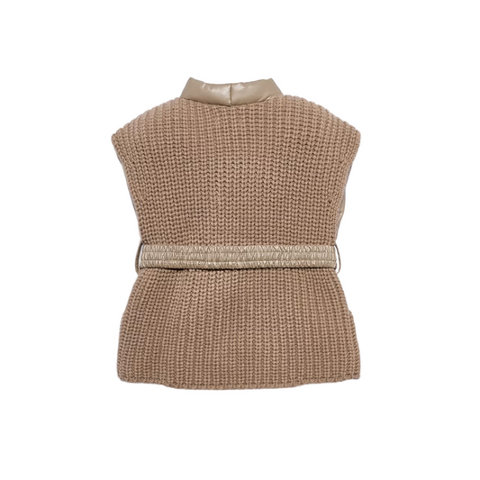 Abel&Lula Girl's Oat Quilted Faux Leather Gilet Vest