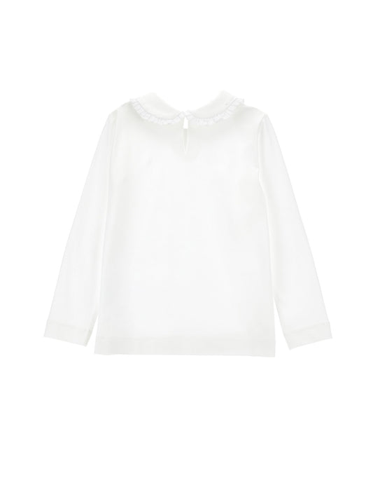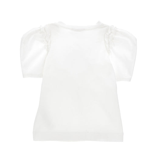 Monnalisa Girl's White Ruffle Neck T-Shirt