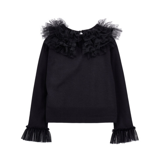 Monnalisa Girl’s Black Jersey Rouche Blouse