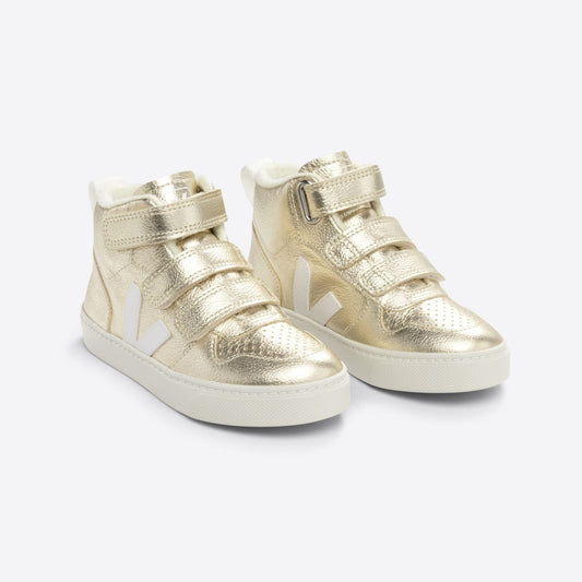 Veja Kid's V-10 Mid Leather Platinum White Trainers