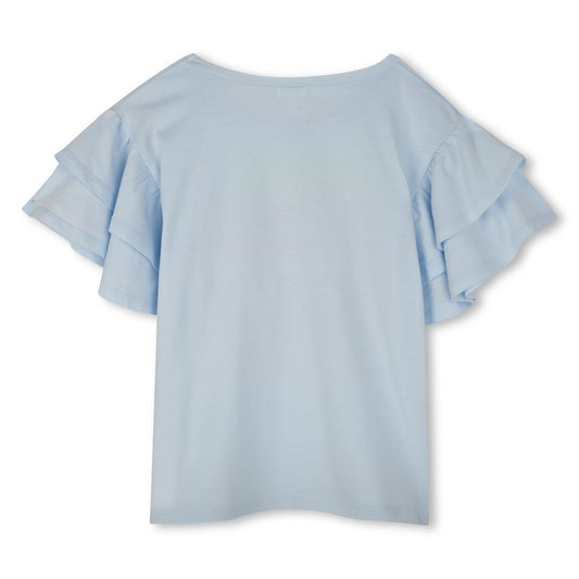 Billie Blush Girl's Ice Blue Ruffled Graphic T-Shirt