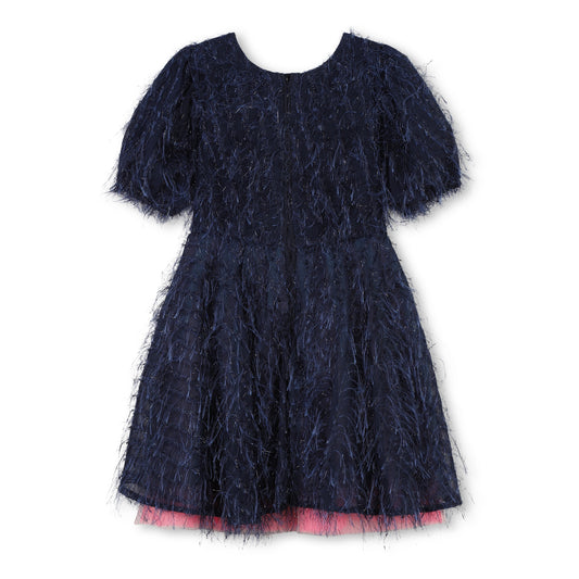 Billie Blush Girl's Navy Sequinned Fringed Dress