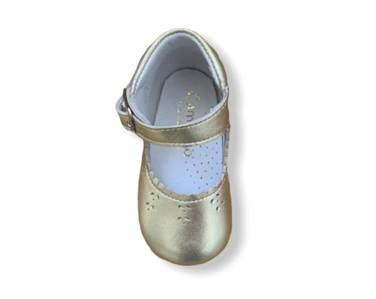 Caminito Baby Gold Leather Buckle Shoe