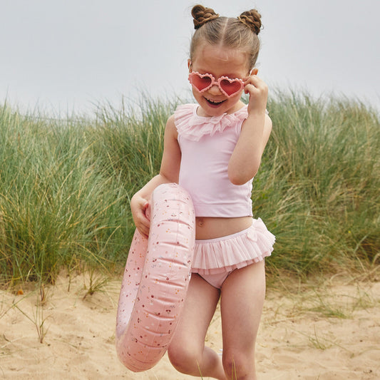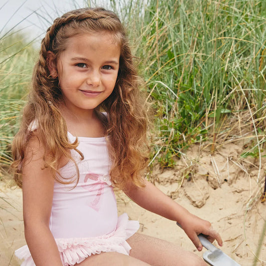 Caramelo Girl's Pink Tulle-Trimmed Swimsuit