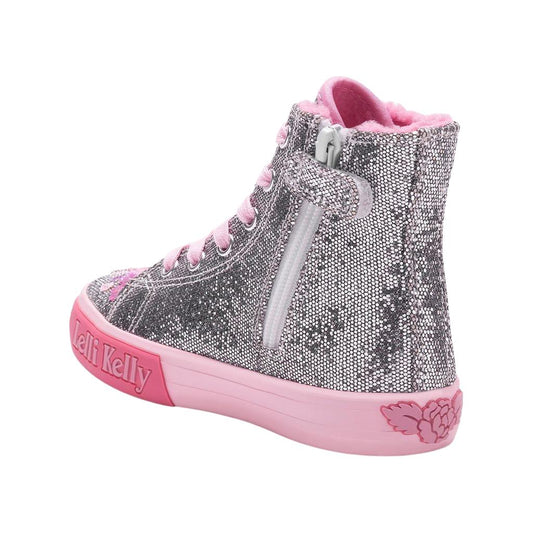 Lelli Kelly Girl's Grey & Pink Glitter Gioello Hi-Top Trainers