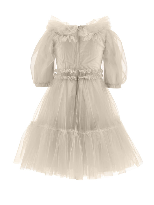 Monnalisa Girl's Beige Ruffled Tulle Dress