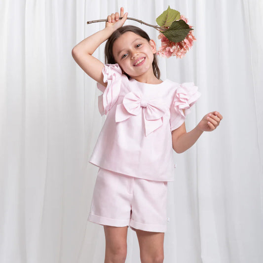 Caramelo Girl's Pink Summer Fete Linen-Blend Shorts Set undefined