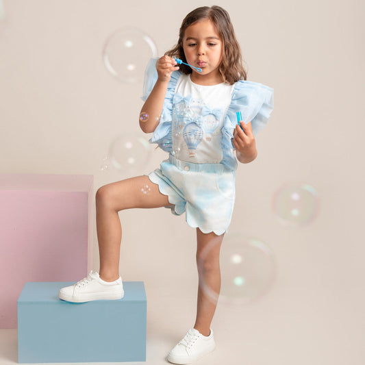 Caramelo Girl's Sky Blue Fly Away Short Set