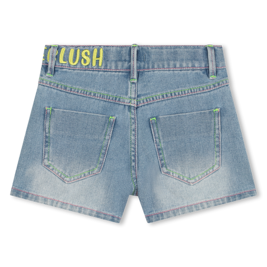Billie Blush Girl's Embroidered Blue Bleached Shorts
