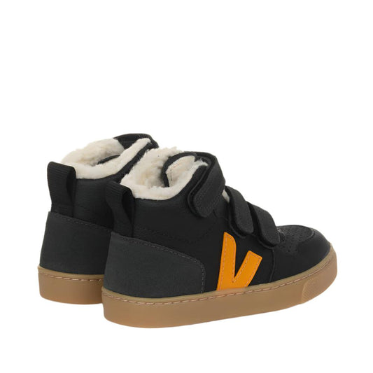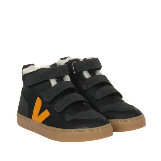 Veja Junior Boy's Black & Yellow Leather V-10 Trainers