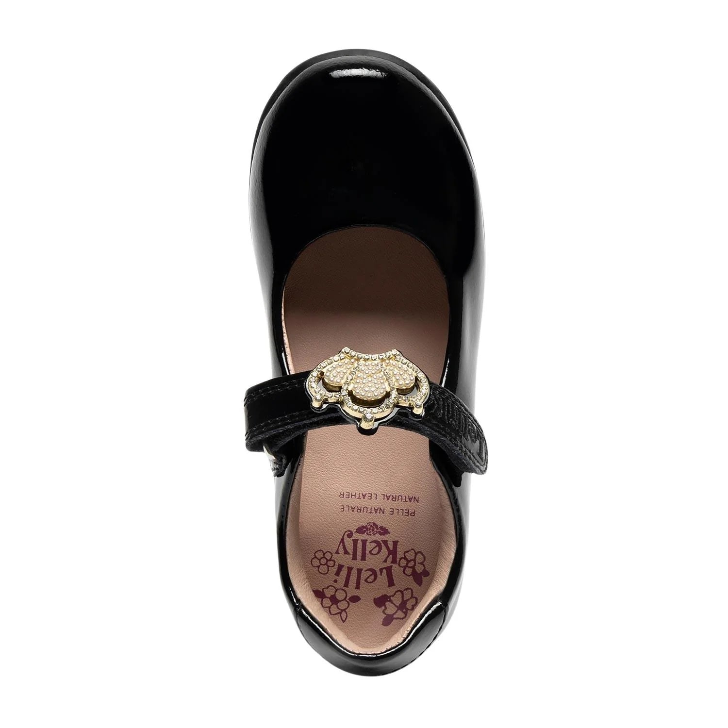 Lelli Kelly Victoria shoes come in a patent upper. Victoria has a hook and loop fastening. A diamante and pearlescent crown charm sits on the strap fastening and this can be slid off and replaced with a large bow. Pink Leather lining completes the look. This is an F Fitting Shoe Standard fit.